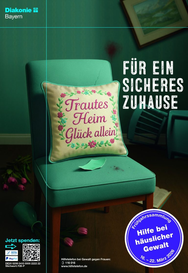 Die Frühjahrssammlung der Diakonie Bayern wirdmet sich in die in diesem Jahr dem Thema „Für ein sicheres Zuhause – Hilfe bei häuslicher Gewalt".