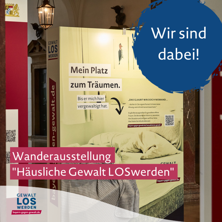 Die Ausstellung „Häusliche Gewalt LOSwerden" des Bayerischen Staatsministeriums für Familien, Arbeit und Soziales informiert und sensibilisiert über verschiedene Formen häuslicher Gewalt – gegen Frauen, Männer sowie Kinder und Jugendliche.